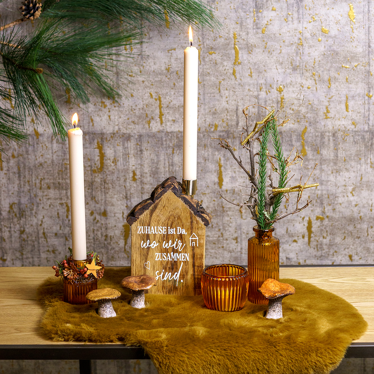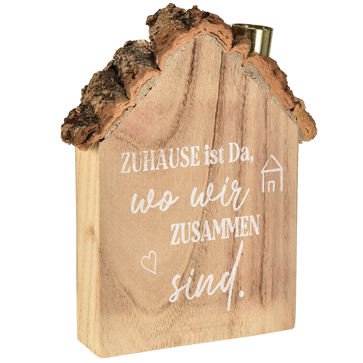 Rustikaler Holz-Kerzenhalter im Hausdesign – Mit herzlicher Botschaft, 19 cm – Gemütliche Heimdekoration