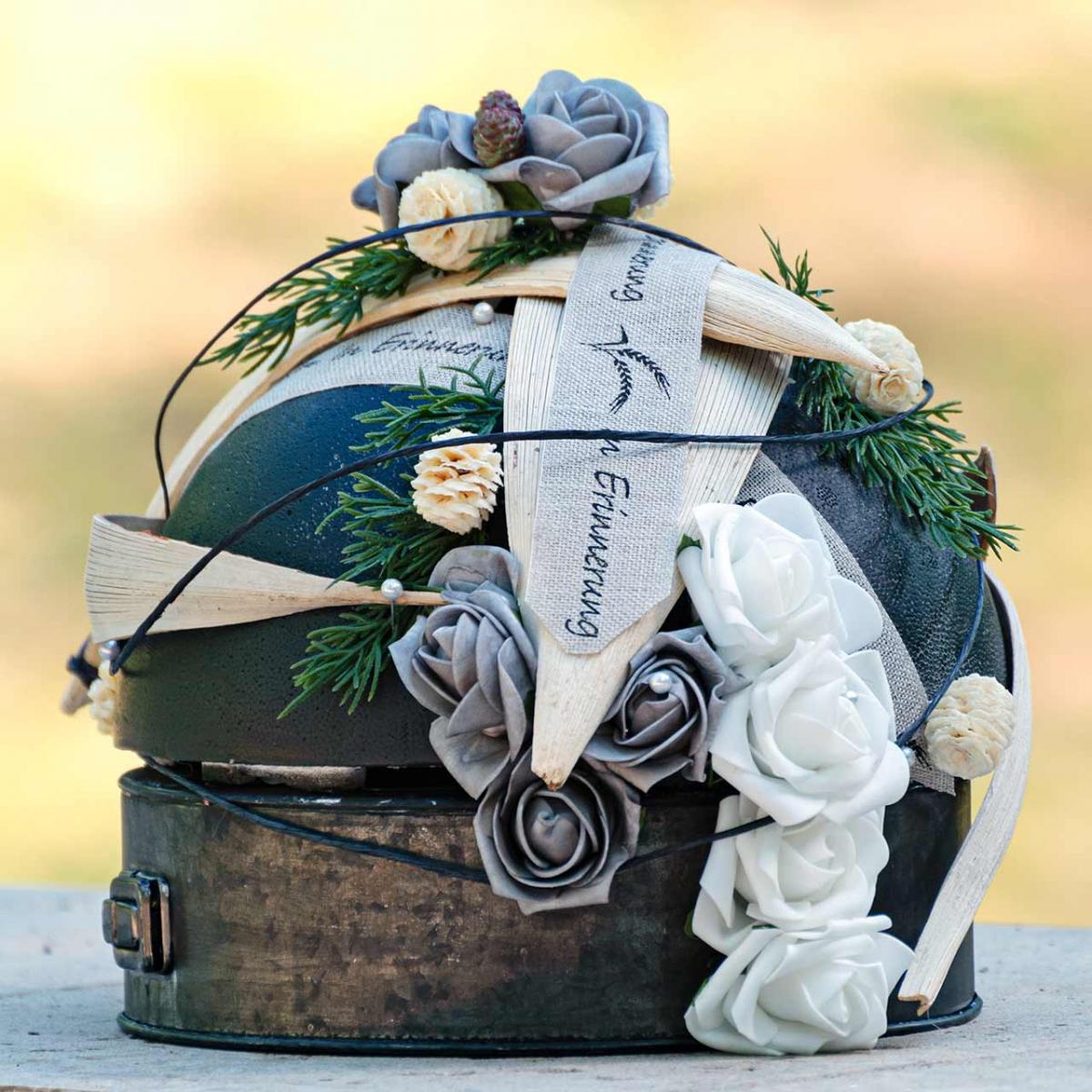 Verwendungszweck: Gedenkfloristik-Artikel für Friedhofsschmuck, Trauergestecke, Grabschmuck und florale Dekoration.
