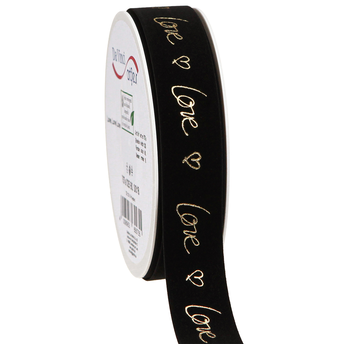 Ruban velours Amour ruban de deuil coeurs or noir 25mm 18m