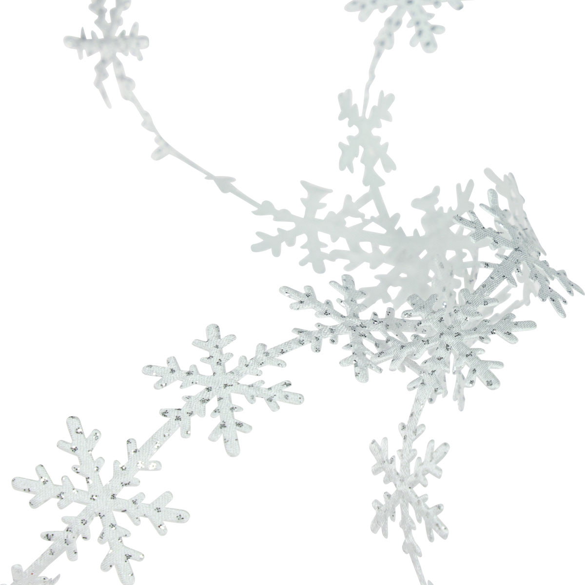 Das Weihnachtsband setzt sich aus weißen Schneekristallen zusammen, die mit kleinen silbernen Punkten verziert sind. Diese Akzente bringen das Dekoband zum Funkeln. Das Satinband besteht aus Polyester und ist lichtecht und wasserfest.