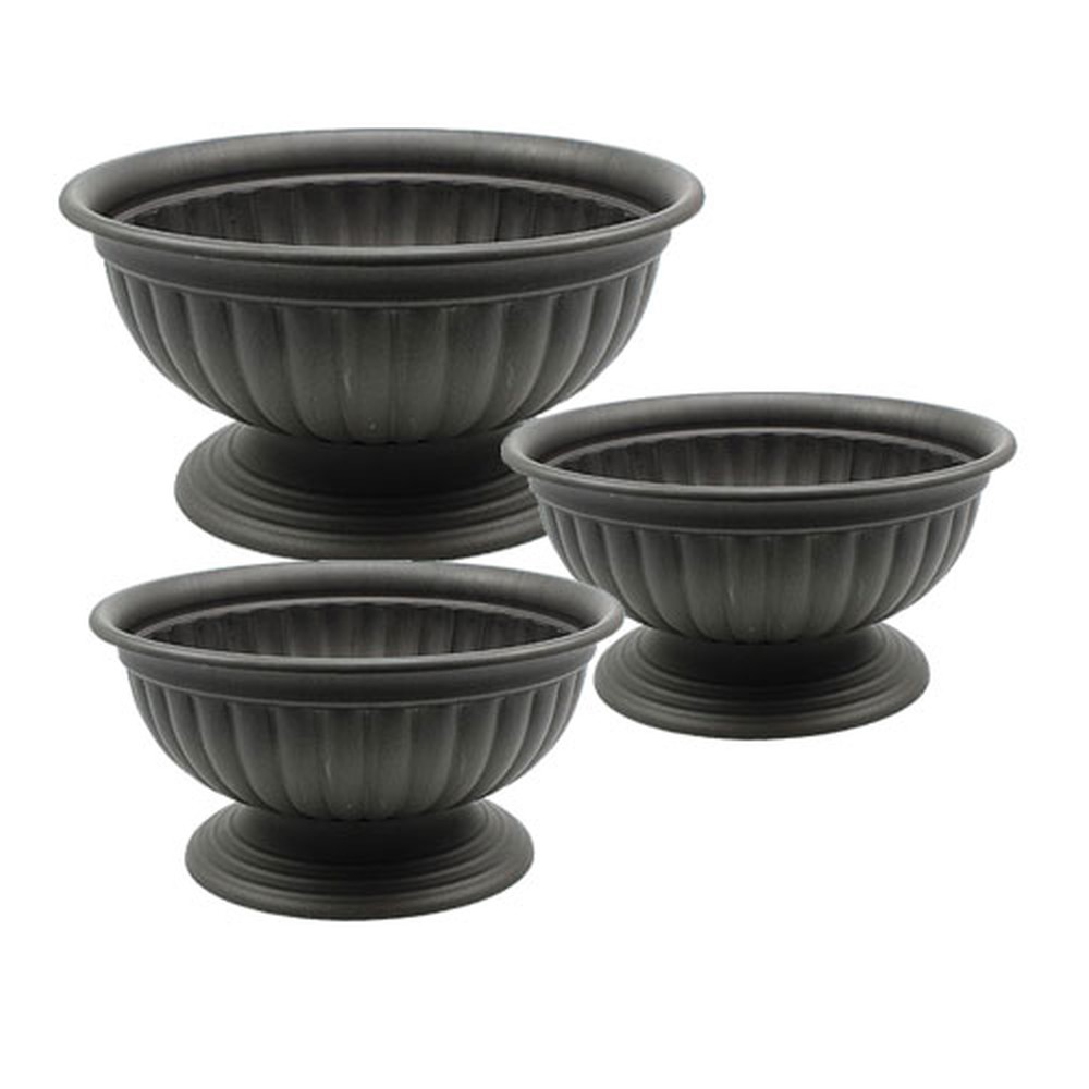 Avec ces jardinières couleur anthracite, différentes plantes peuvent constituer une scène très décorative. Ces jardinières à fond fermé sont prêtes à l'emploi. Grâce au matériau utilisé, les jardinières sont légères et conviennent à une utilisation en extérieur. Vos idées de décoration, compositions florales ou herbes prendront vie dans cette jardinière que vous pourrez ensuite placer comme il convient sur un balcon, une terrasse ou encore un jardin. Vous aurez la possibilité avec ces jardinières de concevoir des entrées et des allées uniques. Ces jardinières embelliront aussi les salles de réception, mais aussi les jardins en été comme en hiver. Pouvant également orner une tombe ou un vase funéraire, remplissez ces bols de fleurs avec vos idées et façonnez votre monde de fleurs autour des monuments funéraires.Taille: 26-35 cm
