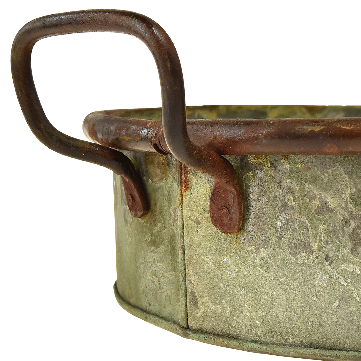 Die ovale Form kombiniert mit dem rustikalen Metall-Look kreiert ein außergewöhnliches Deko-Element. Robuste Henkel sorgen für eine komfortable Handhabe, während die bewusst aufgetragenen Rost-Details jedem Stück eine individuelle Note verleihen. Mit ihren unterschiedlichen Größen bieten diese Schalen viel Platz für Ihre kreativen Dekorationsideen.