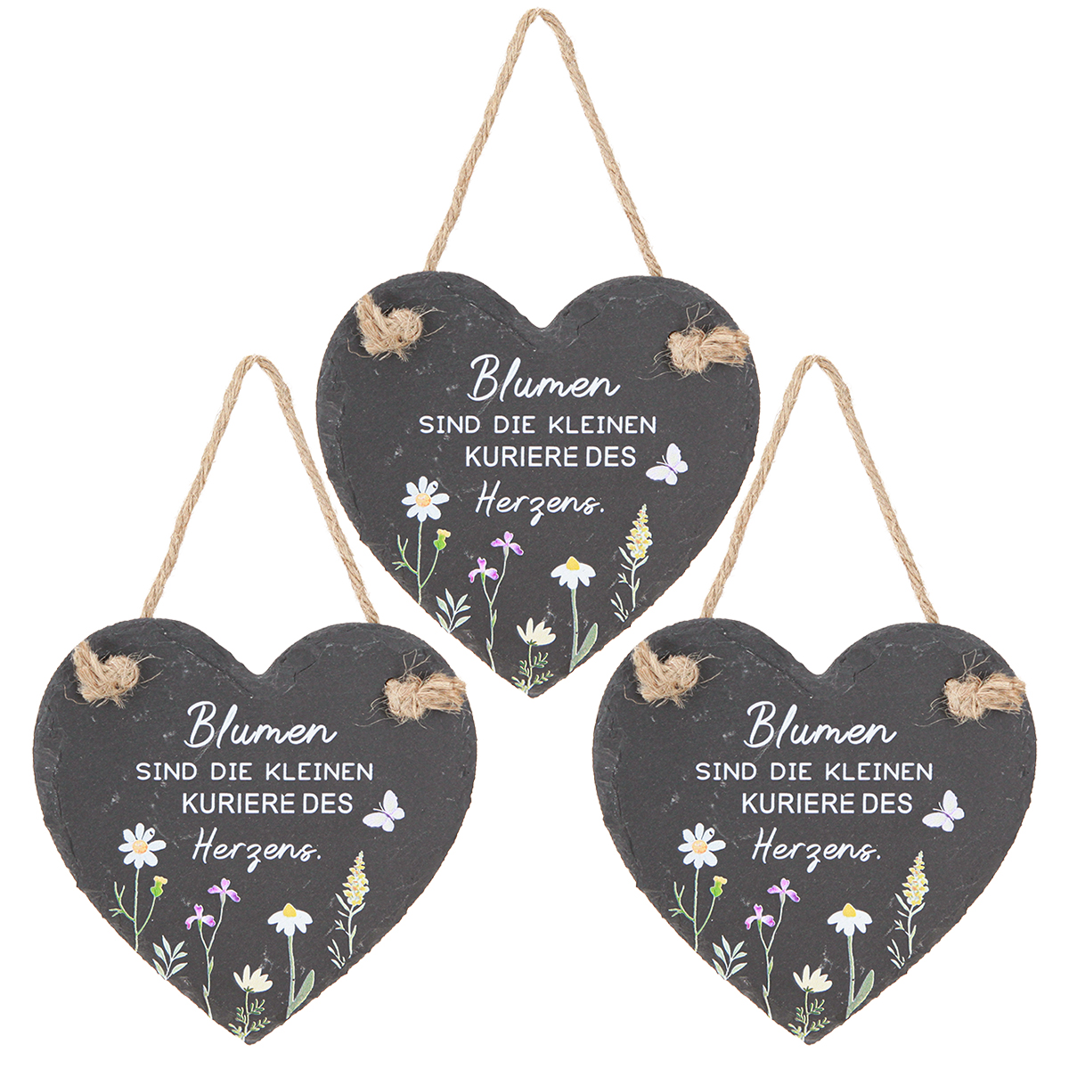 Schiefer Deko Herz zum Hängen „Blumen sind“ 15cm 3St