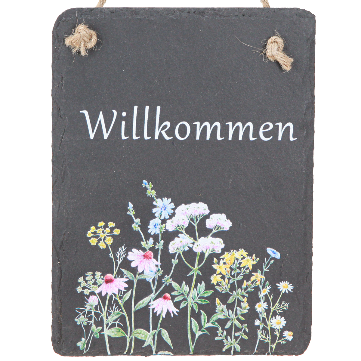Willkommensschild Schieferplatte Hängedeko 20x15cm 2er Set