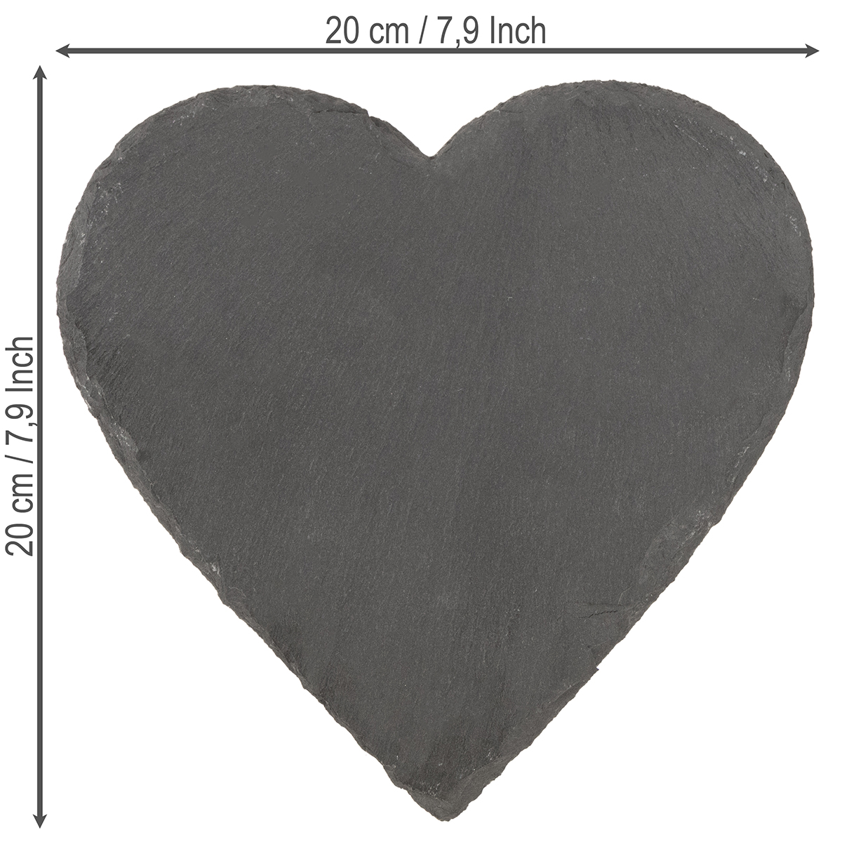 Diese Schieferherzen bringen mit ihrer schlichten Eleganz und der einzigartigen Struktur nicht nur Charme in Ihr Zuhause, sondern sind auch unglaublich vielseitig. Ob als romantische Tischdekoration bei Hochzeiten, Blickfang im Garten oder außergewöhnliche Unterlage für DIY-Gestecke – diese Deko-Herzen sind immer die perfekte Wahl. Wer möchte nicht eine Deko, die sowohl rustikal als auch modern ist? Dabei sind die Platten robust und langlebig – ideal also für viele kreative Ideen.
