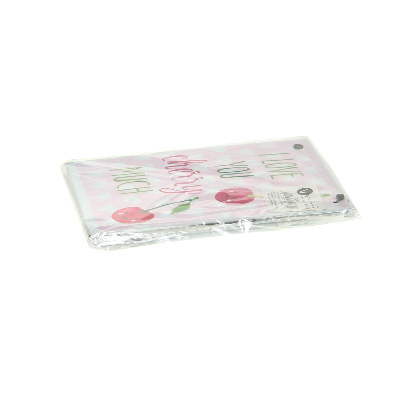 En voilà une adorable déclaration d’amour ! Ce petit écriteau décoratif présente le plus beau message d’amour dans un cadre très fruité. „ I love you very much“ veut dire en anglais „ Je t’aime très fort“. Sur cette plaquette en émaille cette expression fait l’objet d’un jeu de mot puisque le "very" a été remplacé par "cherry" qui signifie cerise comme le montrent les deux visages de cerises qui ornent l’écriteau.