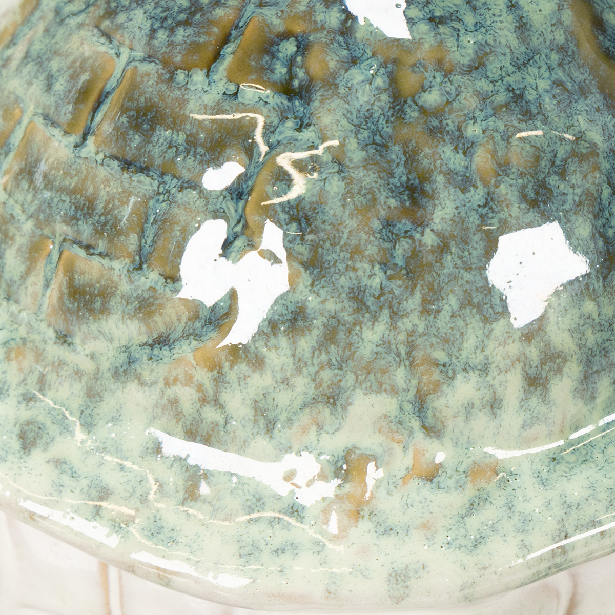 Cette tortue en céramique, confectionnée avec soin, apporte une touche de fraîcheur à votre intérieur et impressionne par sa qualité de fabrication et son aspect unique. Sa carapace arbore un vert tendre aux nuances naturelles, tandis que son corps est d'un élégant crème. Ses détails esthétiques confèrent une harmonie parfaite à tout décor. Idéale pour décorer une étagère de salon ou une table de jardin, elle est également du plus bel effet sur un balcon ou associée à des plantes dans une entrée. Grâce à son design intemporel, elle s'accorde à merveille avec les styles marin, moderne ou rustique. Bien que sensible au gel, cette tortue en céramique est parfaitement adaptée à une véranda ou à une utilisation intérieure. Mettez-la en valeur avec des pots, vases ou autres objets décoratifs assortis : le résultat vous ravira !