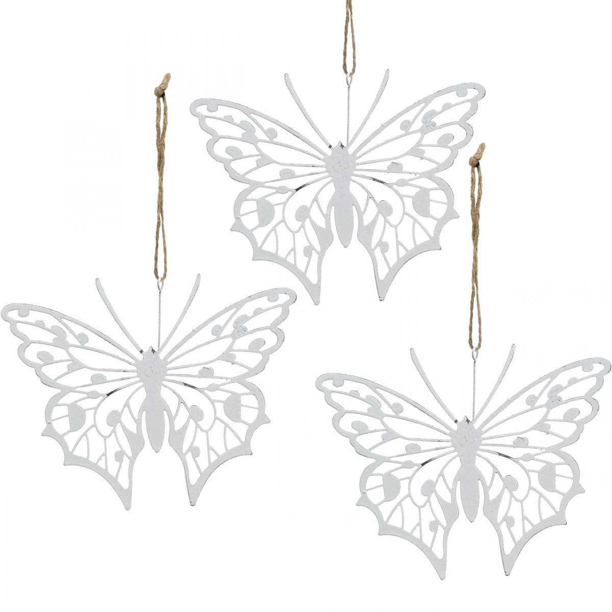 Decorazione farfalla da appendere decorazione vintage in metallo bianco 15×12 cm 3 pz