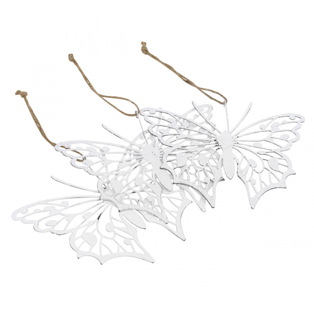Schmetterling Deko hängend Vintage Metalldeko Weiß 15×12cm 3St