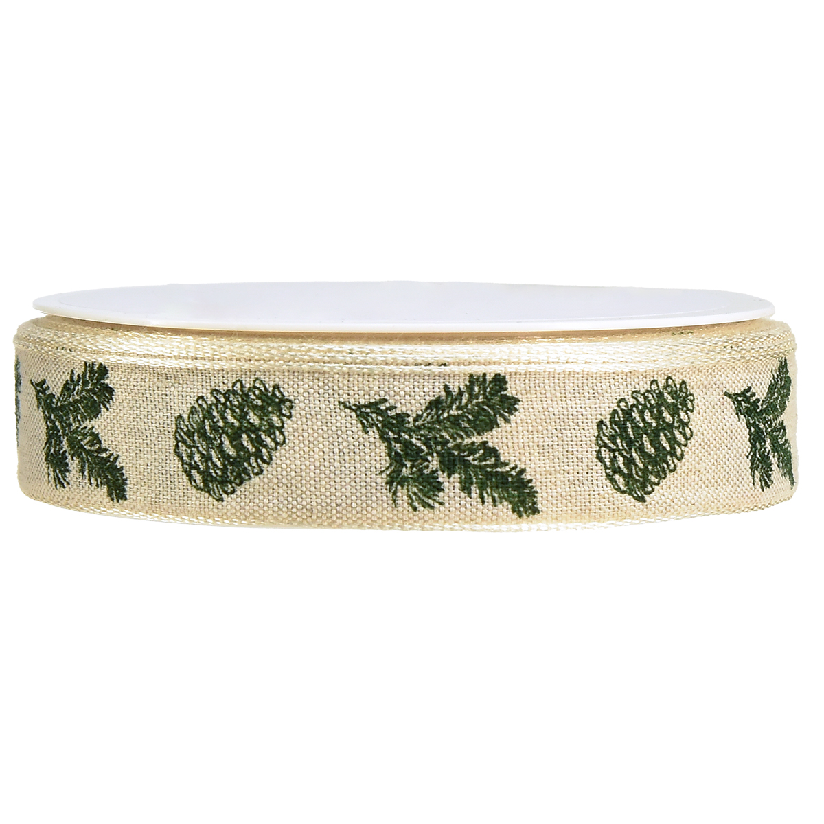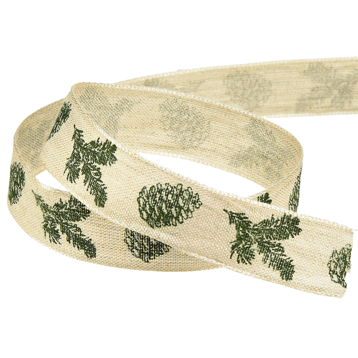 Dekoband mit Drahtkante Zapfen Creme Grün B25mm L18m