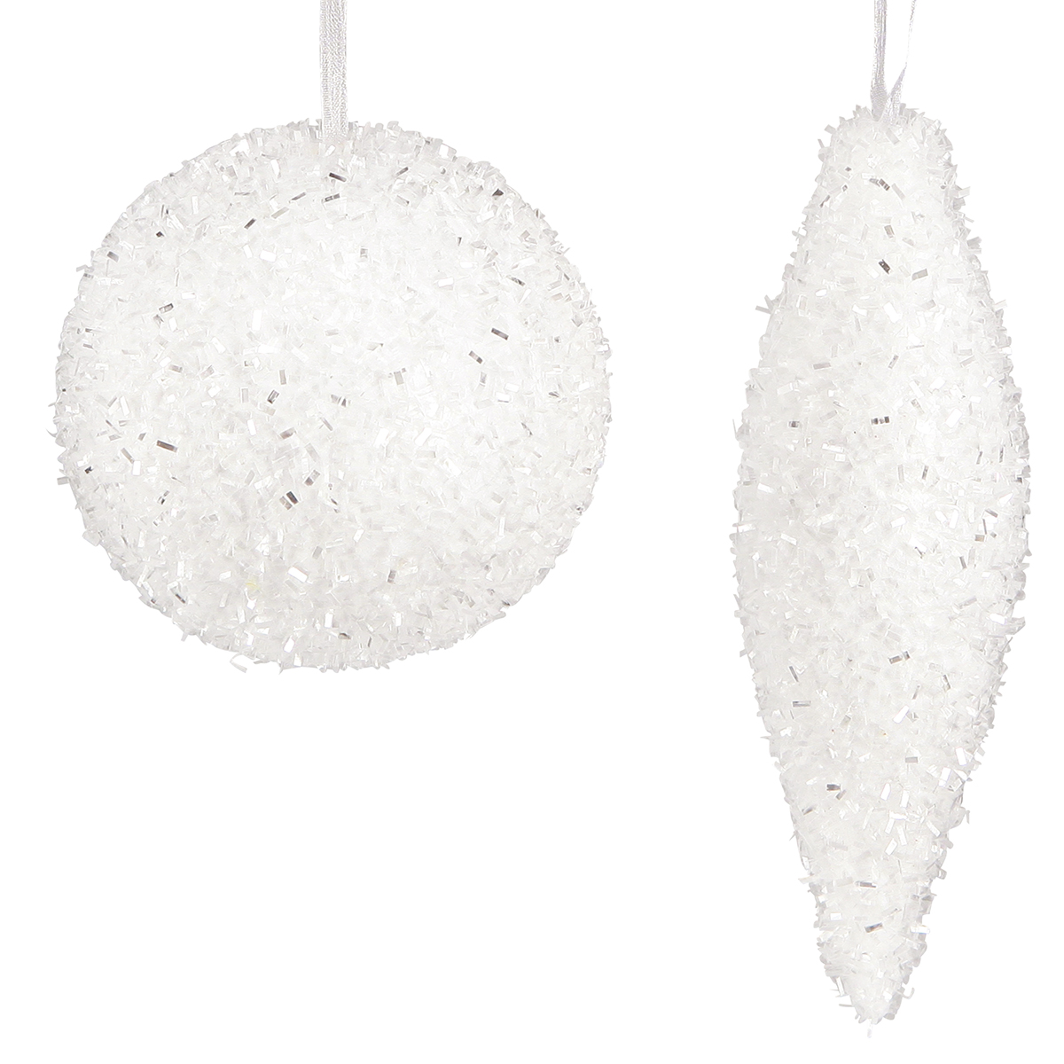 Scopri l'eleganza dell'inverno con la nostra decorazione di neve Decorazioni natalizie con palline di Natale a forma di palle di neve e coni a forma di ghiaccioli di neve. Che si tratti di un'elegante decorazione per la finestra nel periodo natalizio o di una festosa decorazione per l'albero in inverno, questa decorazione natalizia bianca porta la magia dei paesaggi innevati nella vostra casa.