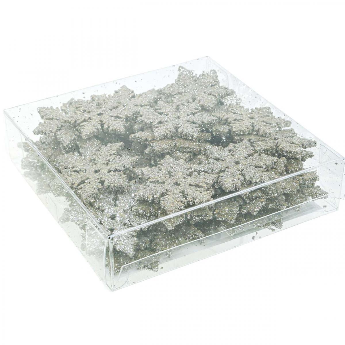 Bois de flocon de neige 4cm or clair avec mica 72 pcs
