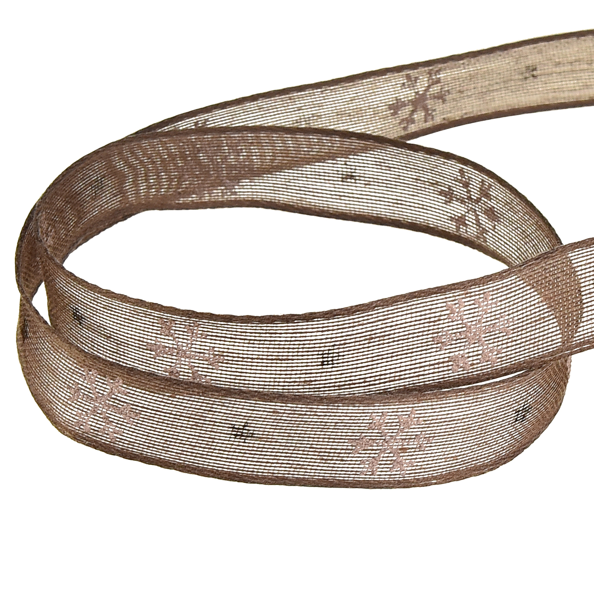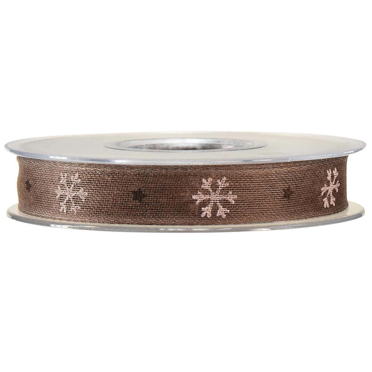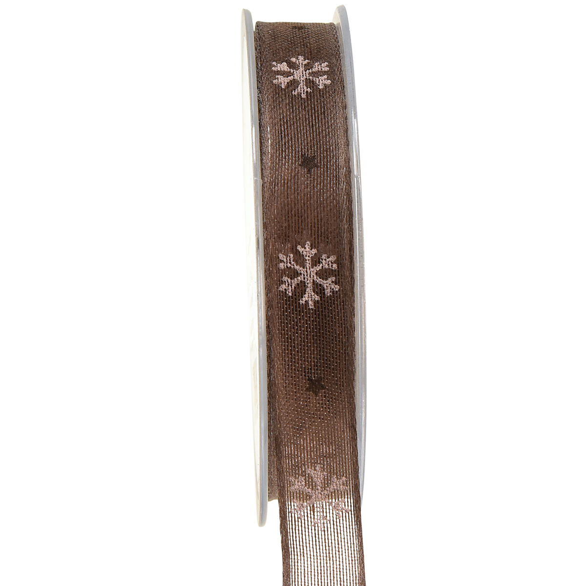 Ruban décoratif flocon de neige avec fil marron rose L15mm L15m