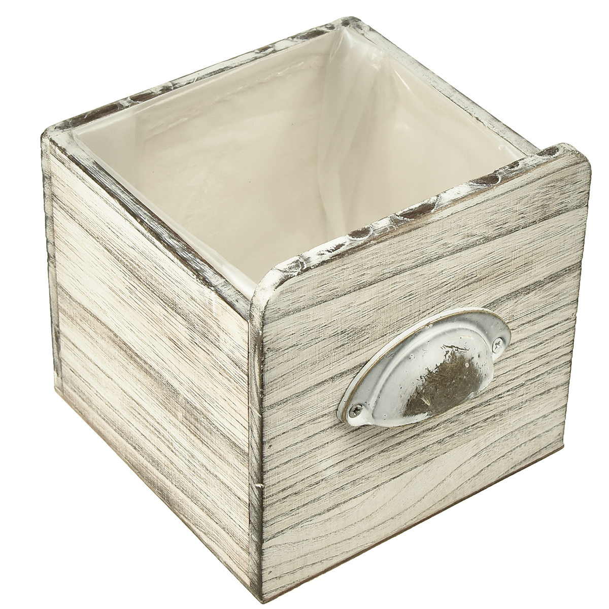 Die kleinen Holz Schubladenboxen sind vielseitig einsetzbar und speziell gefertigt, um Ihre Kreativität und Ordnung zu unterstützen. Jede Box ist mit einer speziellen Folie für direkte Bepflanzung ausgestattet, diese macht sie zum idealen Gefährten für Floristen und anspruchsvolle Pflanzenfreunde. Das Vintage Design macht jedes Stück zu einem Unikat und fügt sich harmonisch in jedes Ambiente ein.