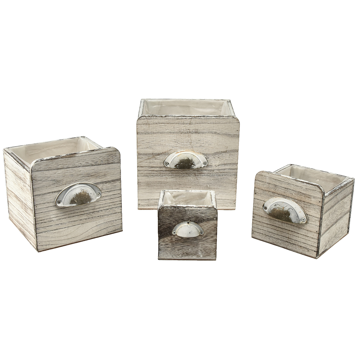 Scopri la perfetta combinazione tra funzionalità ed estetica con il nostro set di 4 cassetti in legno, ideale per decoratori e fioristi. Le rustiche scatole portaoggetti in legno con pratica maniglia non solo offrono una soluzione ottimale per la vostra organizzazione, ma anche una presentazione attraente per i vostri locali.
