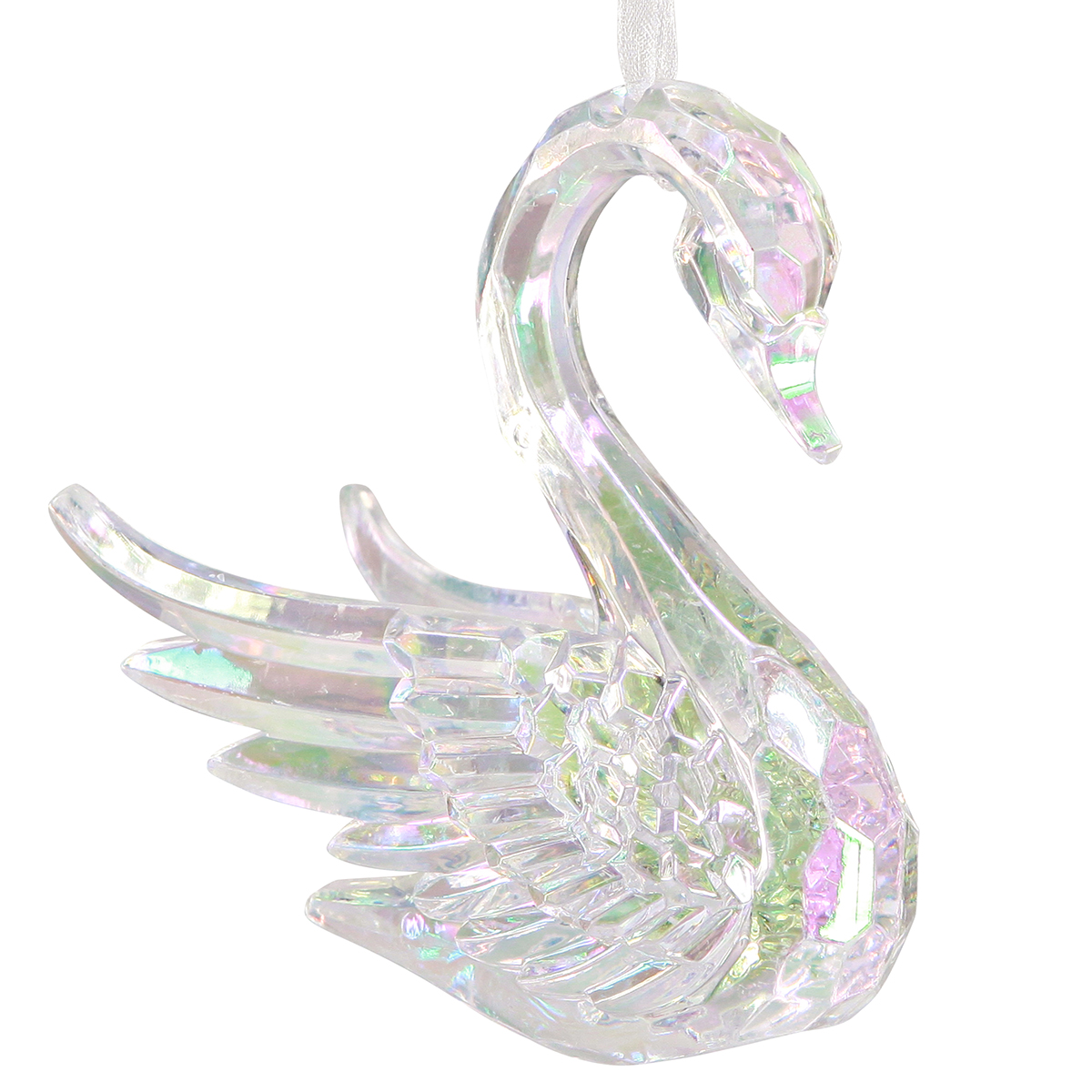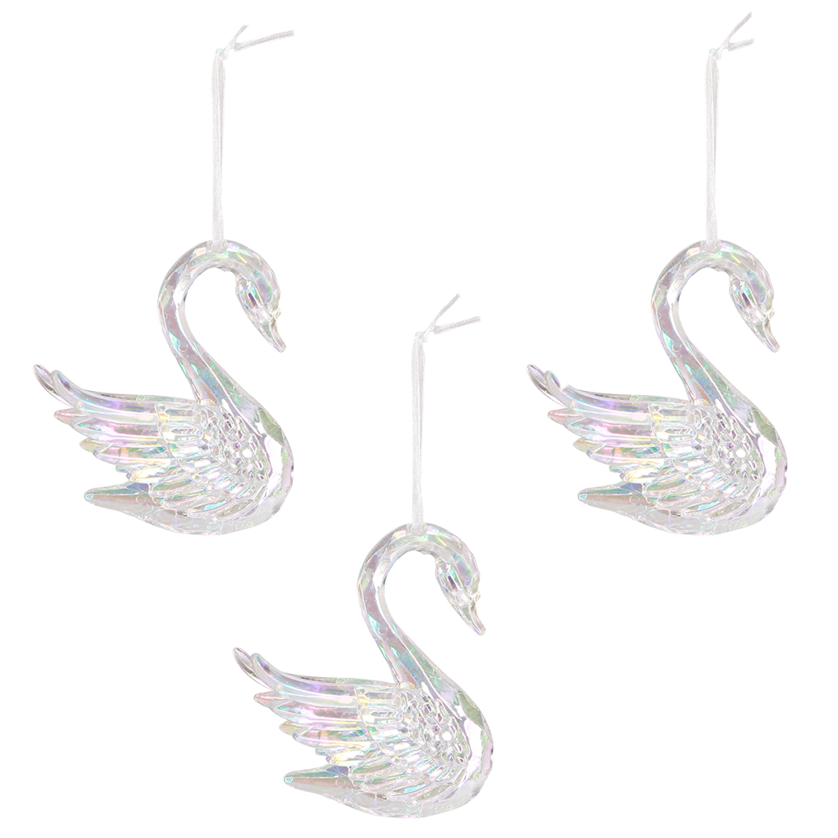 Figure decorative natalizie a forma di cigno, acrilico, 8,5x4x10cm, 3 pezzi