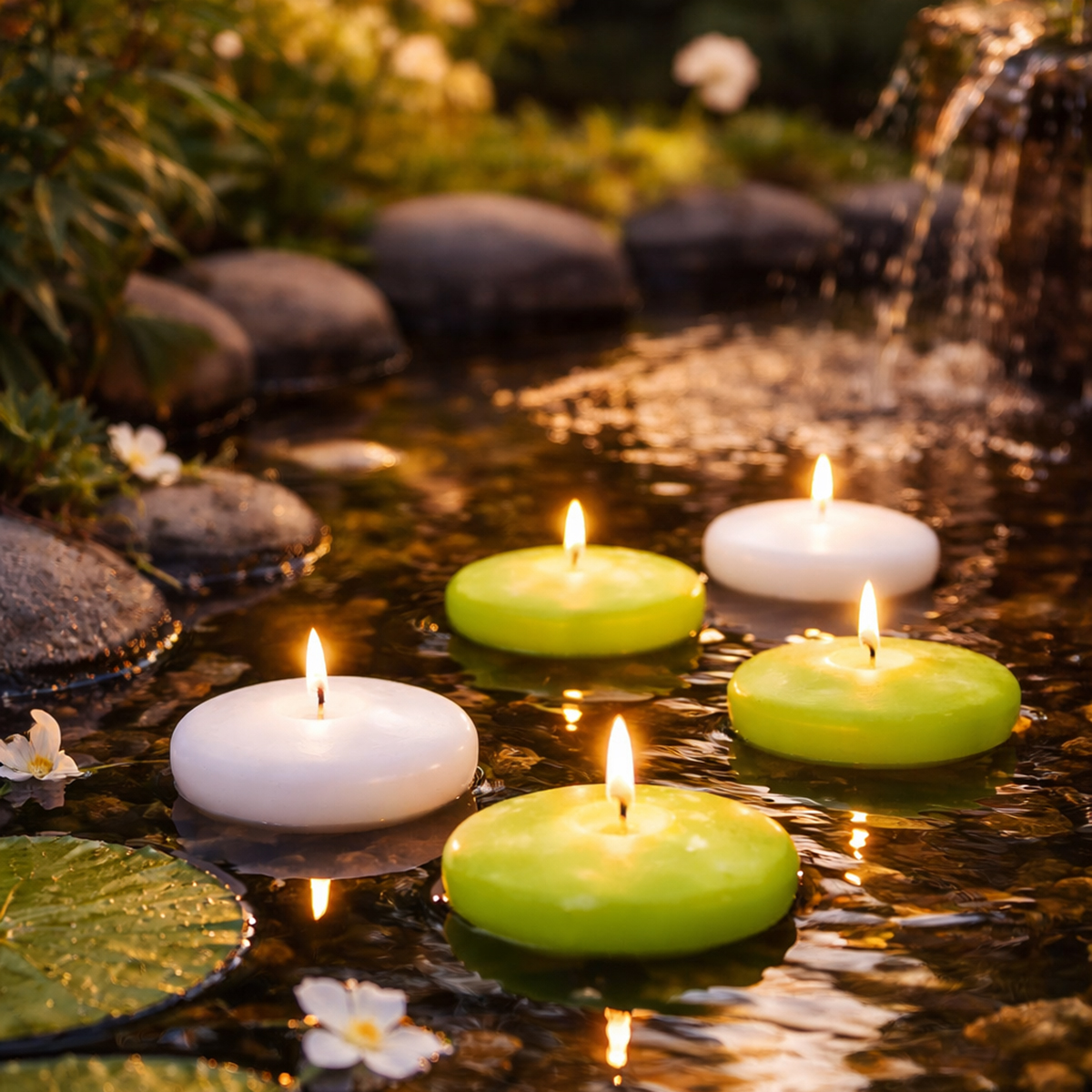 Se desiderate creare un'atmosfera accogliente quest'estate, queste candele galleggianti bianche sono la scelta giusta. Rotonde e piatte, creano eleganti accenti in un laghetto da giardino o in un piccolo lago, immergendo la superficie dell'acqua in una calda luce. Tra ninfee, canne e altre piante acquatiche, queste candele galleggianti in cera di alta qualità creano un effetto quasi magico, aggiungendo un'atmosfera unica alle feste in giardino e alle riunioni estive. Sono perfette anche per feste in piscina e altre occasioni simili.