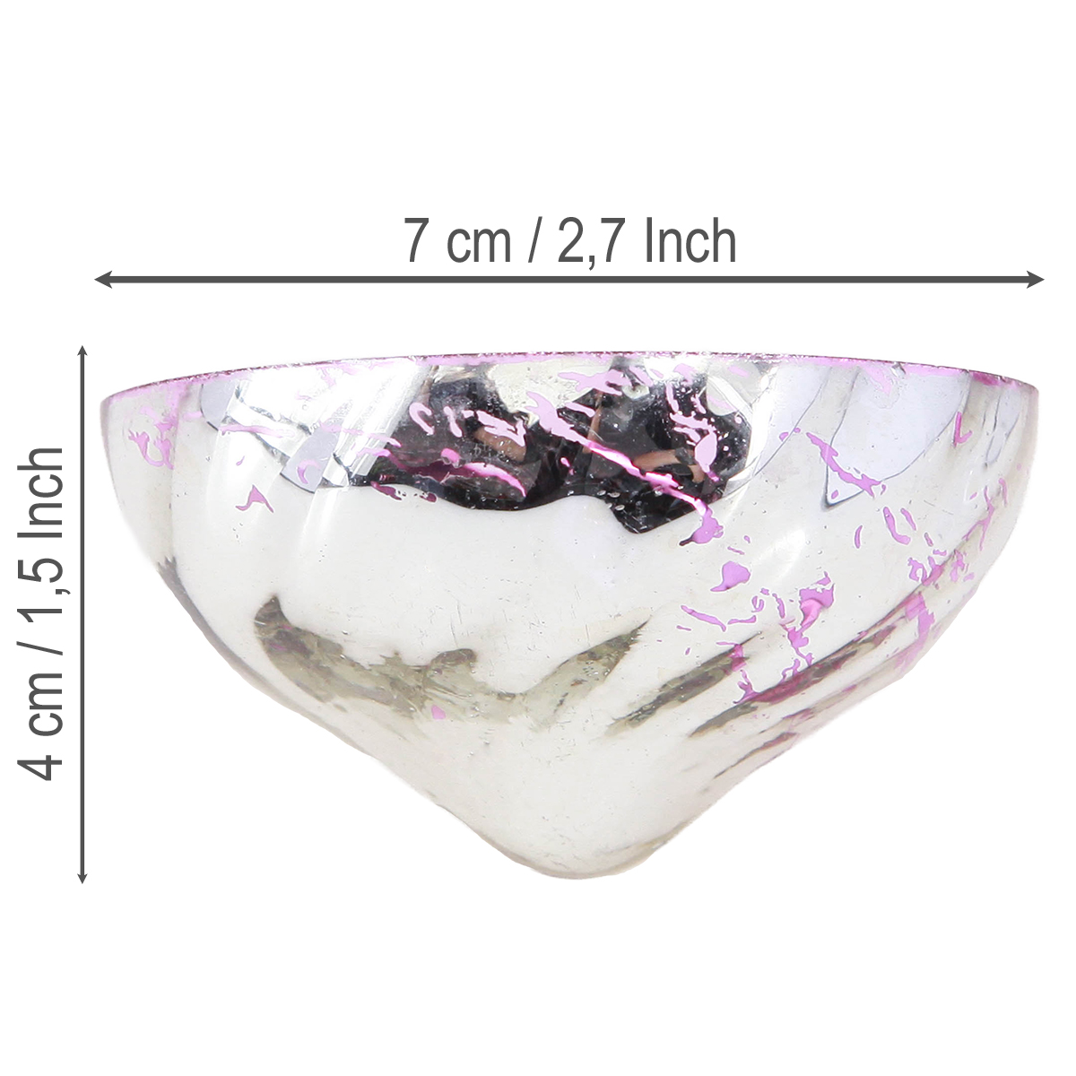 Unsere Schwimmschalen für Teelichter aus Glas in Silber und Flieder verleihen Ihrem Ambiente eine faszinierende und elegante Note. Ideal für gemütliche Abende, festliche Veranstaltungen oder romantische Zusammenkünfte, kombinieren die 3 Teelichthalter perfekt die anmutigen Farben Flieder und Silber mit einem Vintage-Finish. Jede Schwimmschale aus hochwertigem Glas erscheint außen in einem stilvollen Silber-Metallic-Ton, der gewollte Abriebspuren aufweist und damit einen charmanten Vintage-Stil verkörpert. Die einzigartige Kombination aus Farben und dem schwimmenden Design macht diese Teelichthalter zu einem idealen Kerzenhalter für Ihr Zuhause.