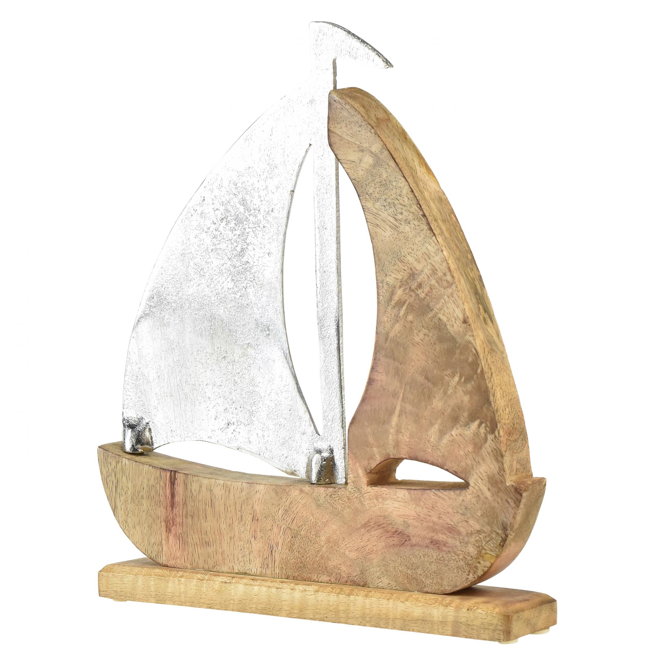Segelschiff Deko Natur Silber Mangoholz 25,5x4x28,5cm