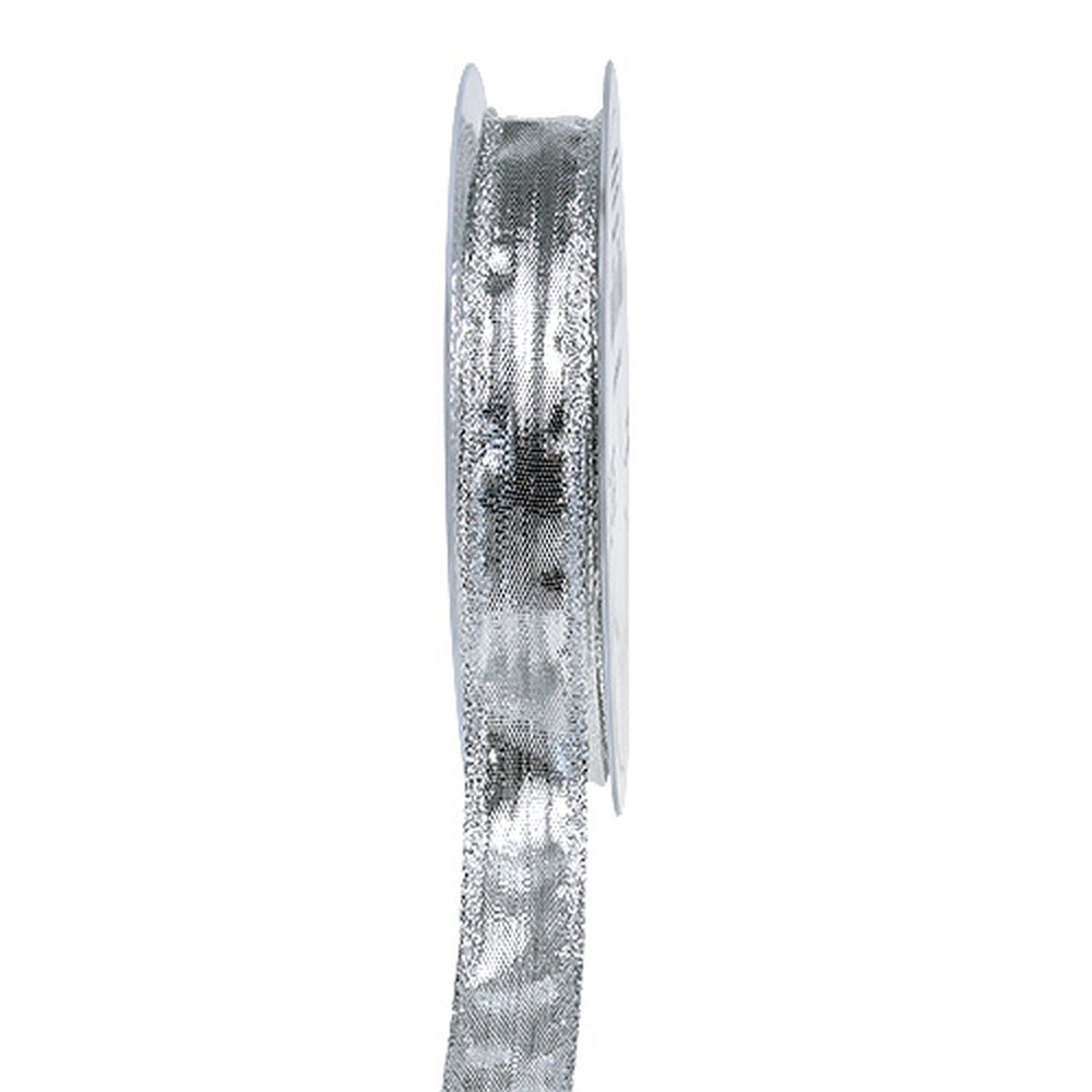 Produktname: Dekoband Silber mit Drahtkante 15mm 25m