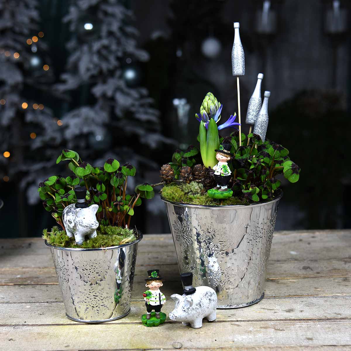 Sie können die Silvesterdeko dann locker in die Blumenerde einer Zimmerpflanze stecken und damit in der ganzen Wohnung für eine sympathische Silvesterstimmung sorgen. Sie können die Deko-Flaschen auch ganz pfiffig in eine leere Flasche stecken und damit dann auch einen Flur oder das Badezimmer schmücken. Und wenn Sie eine Sektflasche oder einen guten Wein zur Party Ihrer Freunde mitbringen, können Sie diesen Stab dort anbringen und das Gastgeschenk liebevoll überreichen!