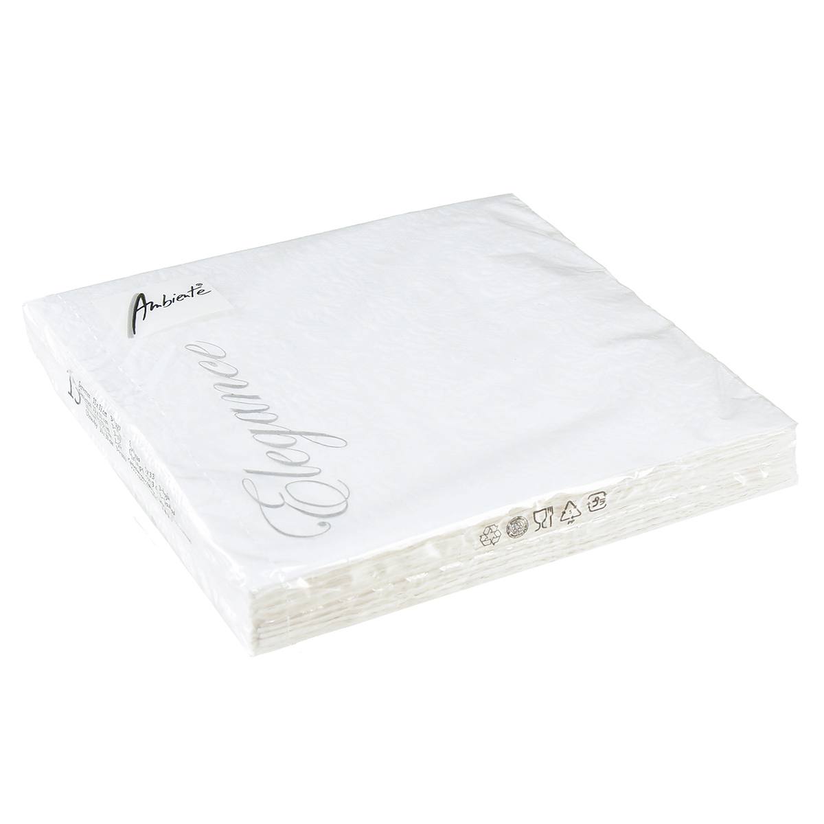Sie erhalten die Servietten in Weiß zu 15 Stück.