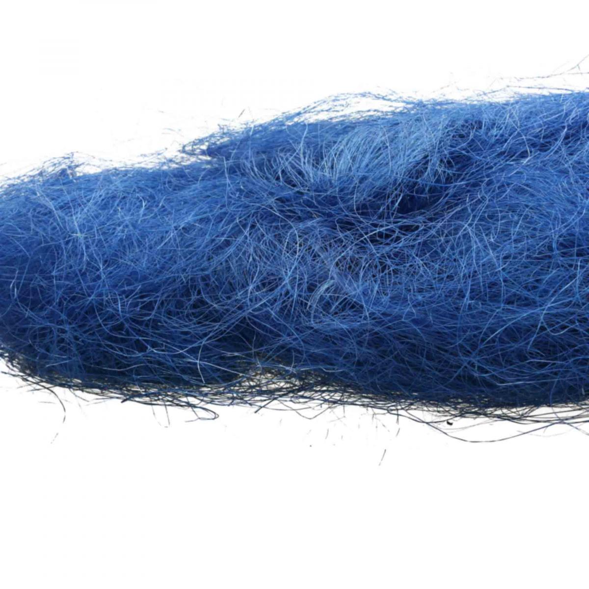 L'ovatta di sisal di colore blu è in una palla del peso di circa 300 grammi in un sacchetto di plastica. Può essere smontato come desideri e ulteriormente elaborato individualmente.