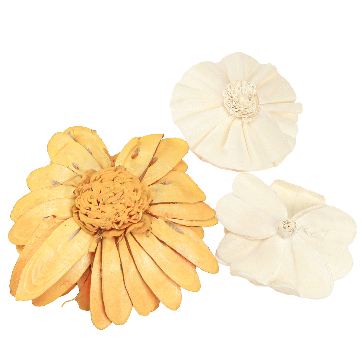 - Mix aus 12–15 handgearbeiteten Sola-Holzblumen