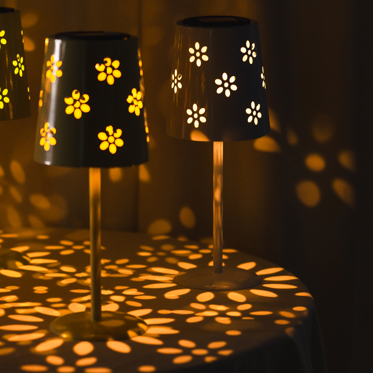 Lampe de table solaire avec LED – Éclairage d'ambiance au motif floral