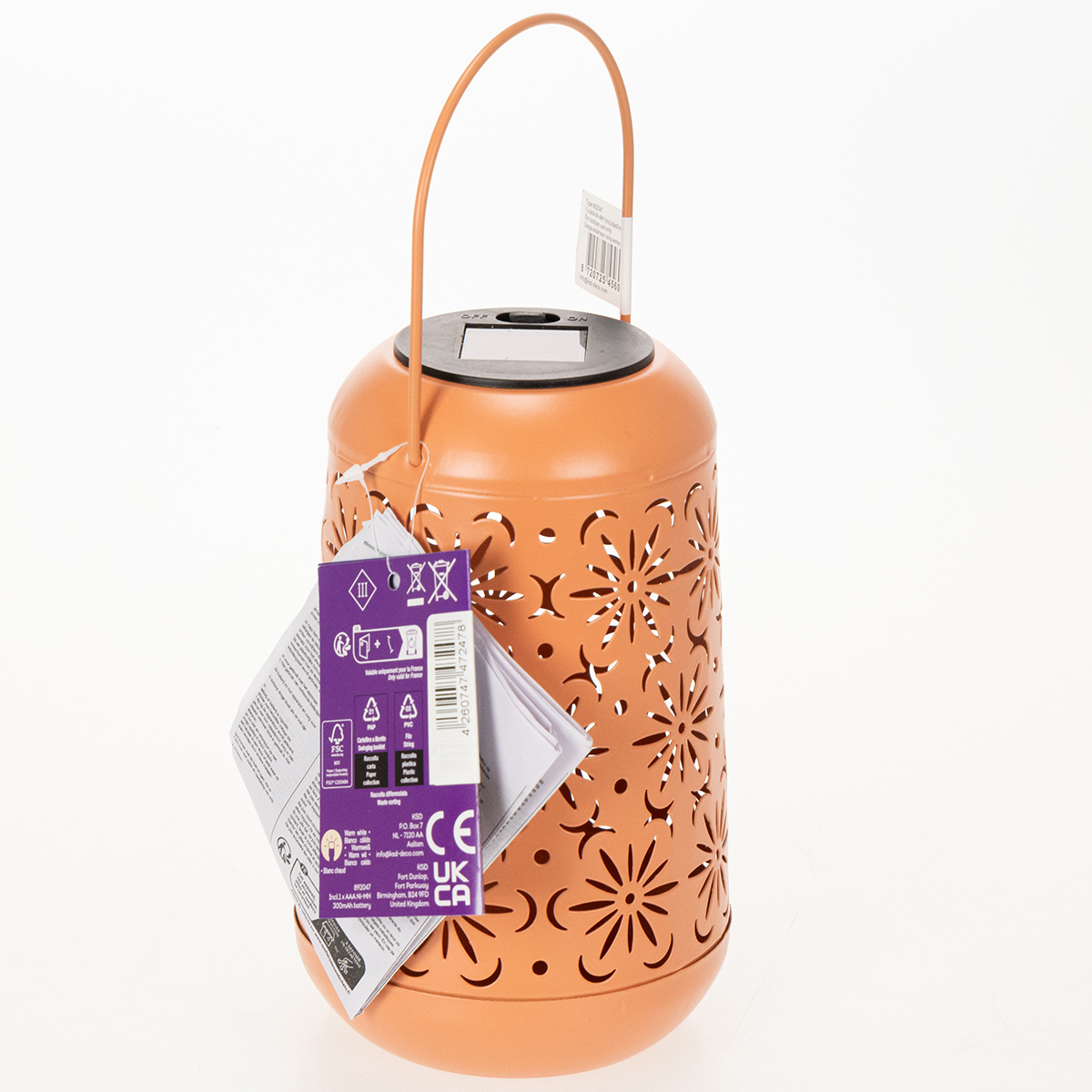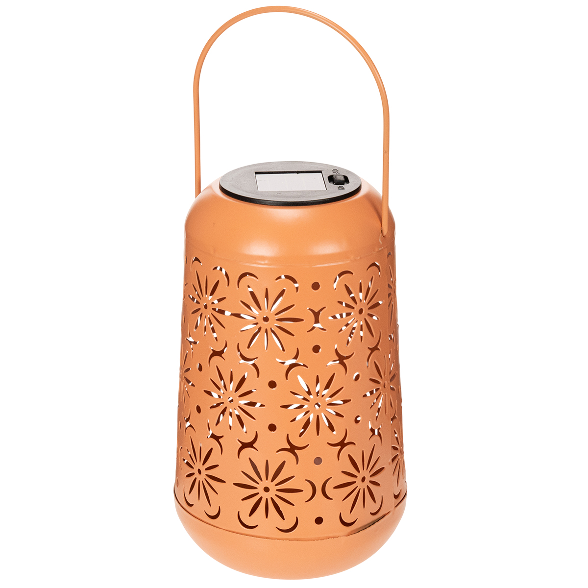 Y a-t-il quelque chose de plus magique que de s'installer sur la terrasse, dans le jardin ou sur le balcon le soir, baigné d'une douce lumière scintillante ? Notre lanterne solaire au motif floral recrée cette ambiance chaleureuse chez vous ! Haute de 26 cm et dotée d'une magnifique finition orange, elle ne manquera pas d'attirer les regards. Sa batterie intégrée lui assure une lumière blanche chaude pendant six heures à la tombée de la nuit. Que ce soit pour un dîner romantique en plein air, une soirée conviviale entre amis ou une douce nuit d'été, cette lanterne est le compagnon idéal. Et le meilleur ? Grâce à sa poignée pratique, vous pouvez la suspendre ou la poser où bon vous semble. L'éclairage parfait pour vos espaces extérieurs, n'est-ce pas ?