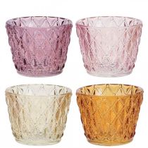 Deko Windlicht Glasmotiv Gräserdesign für stimmungsvolle Raumakzente blau 8cm 4St.