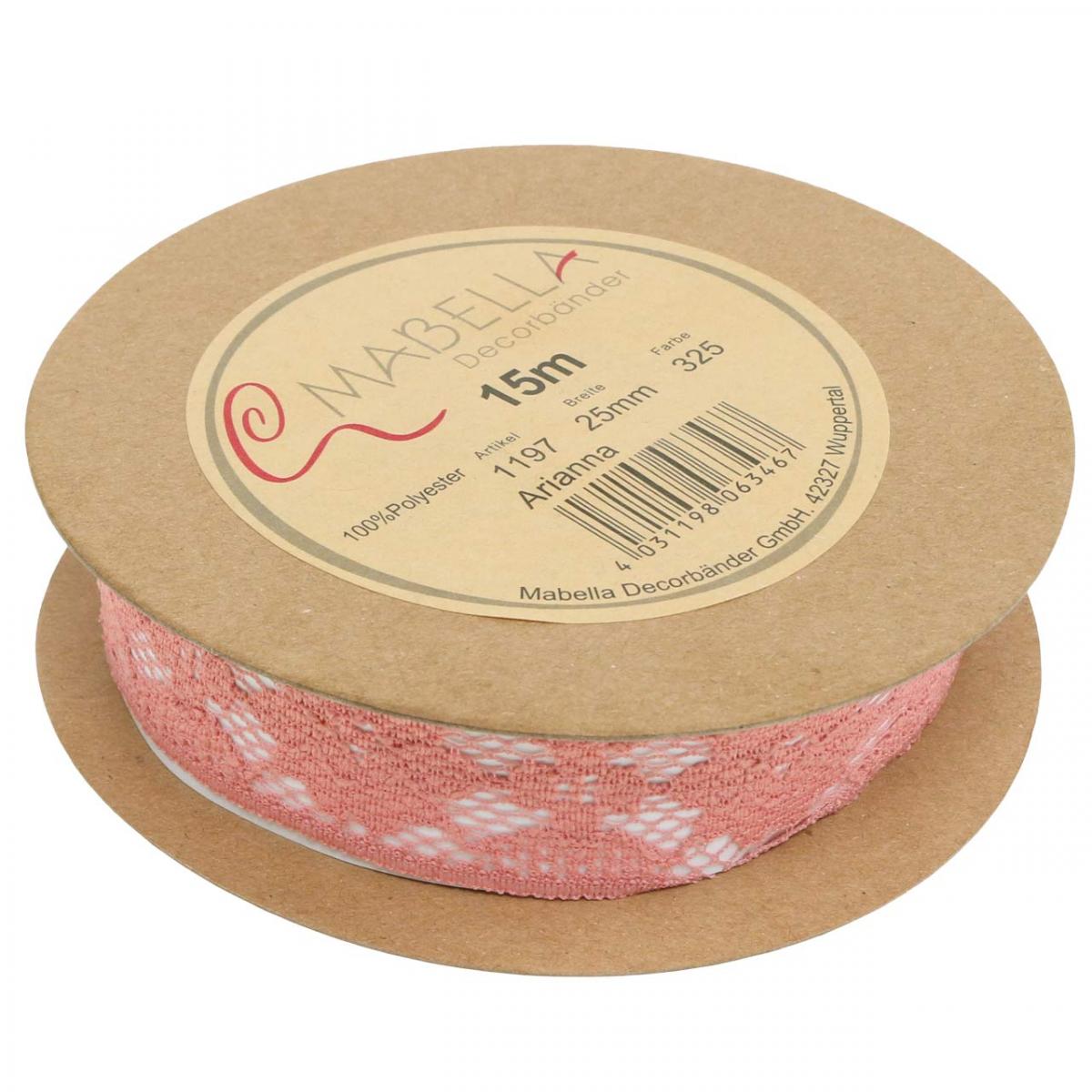 Produktname: Spitzenband Altrosa, Schmuckband, Vintage-Deko, Dekoband, Hochzeitsdeko B25mm L15m
