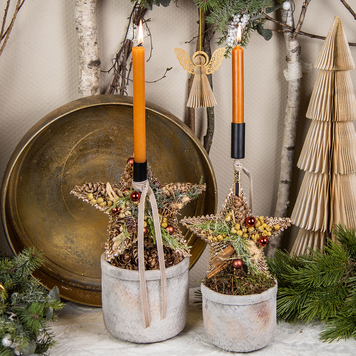- Kerzenhalter und Baumscheiben