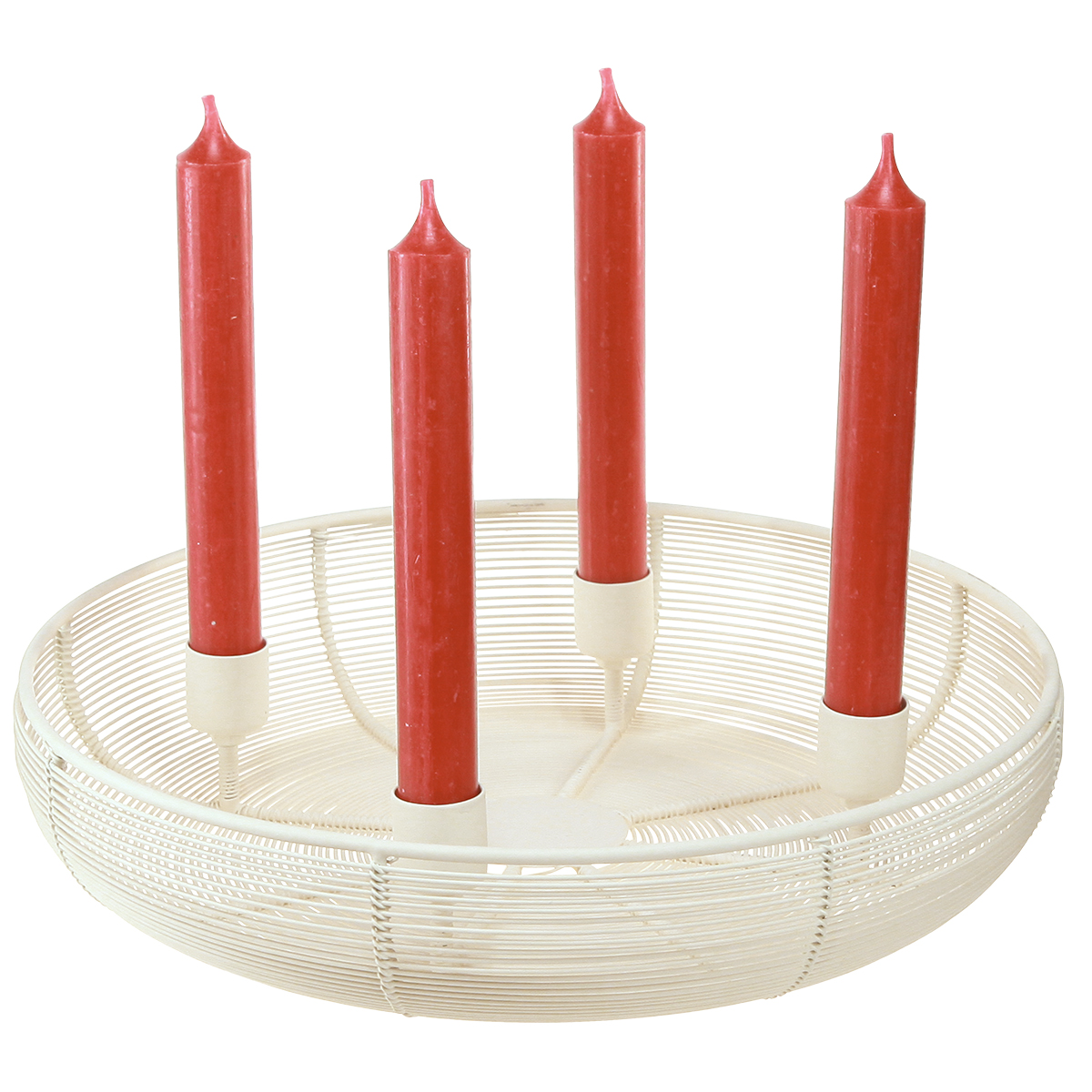 Stabkerzenhalter für 4 Kerzen Kerzenschale Creme Ø29cm