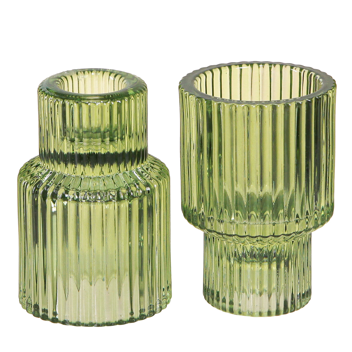 - Grüner Kerzenhalter aus Glas mit geriffelten Seiten