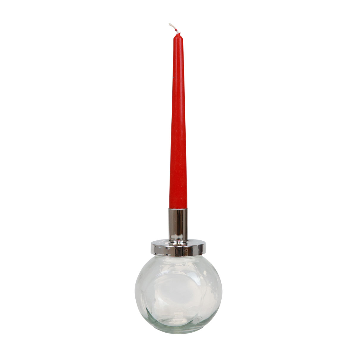 Bougeoir bâton chandelier verre métal argent Ø10,5cm 4pcs