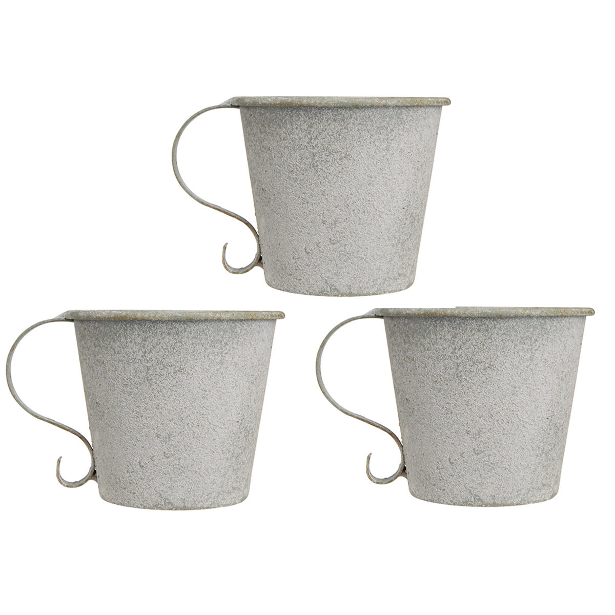 Stabkerzenhalter Vintage Tasse Kerzenhalter Metall Grau Ø9,5cm H8cm 3St