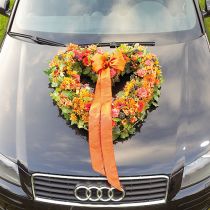 Damit das Brautpaar auch gebührend vom Standesamt oder der Kirche zur Feier geleitet wird, schmücken Sie die Motorhaube des Hochzeitsautos mit dem praktischen Auto Herz, das mit Saugnäpfen sicher befestigt wird und einen starken Eindruck hinterlässt.