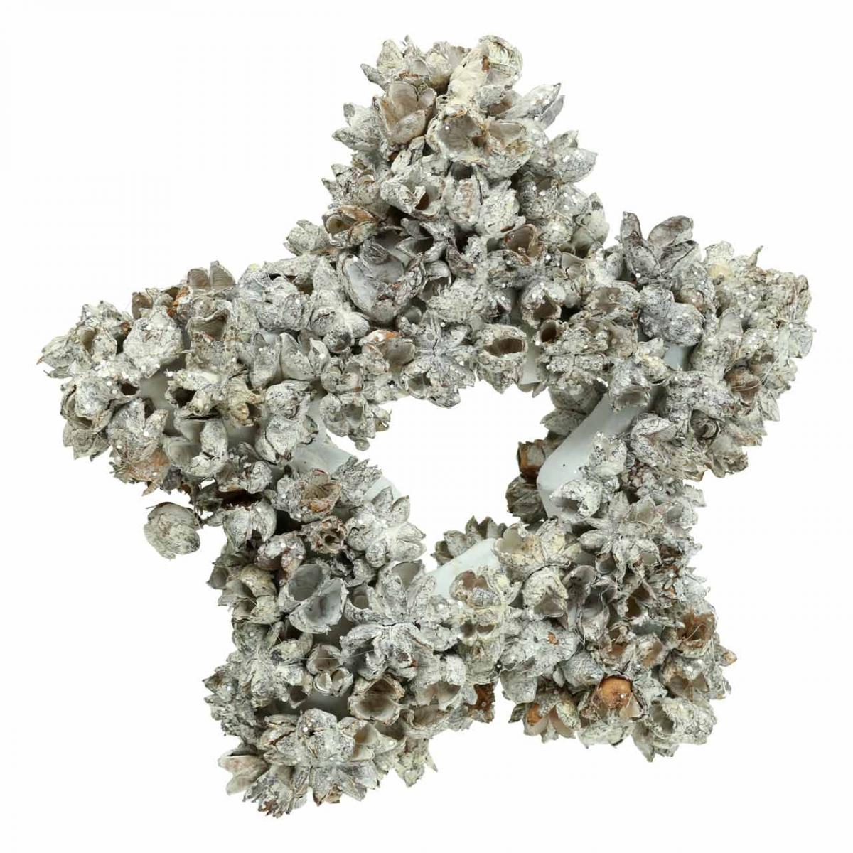 La stella bianca scintillante da appendere sembra piena di ghiaccio e neve nella decorazione natalizia. La stella di Natale è costituita da un telaio di polistirolo su cui sono attaccati ravvicinati innumerevoli baccelli a forma di stella. Un appendiabiti quasi invisibile fa sembrare la stella decorativa fluttuare nell'aria come una stella di neve.La stella decorativa da appendere diventa il punto culminante su una ghirlanda di porte e fornisce anche un colpo d'occhio nella decorazione dell'Avvento nella finestra. La stella naturale è adatta come ornamento per l'albero di Natale per un albero di Natale più grande. La stella in materiali naturali può essere valorizzata anche sui rami di abete, in vetrina oa parete. Oppure puoi nascondere l'appendiabiti e rendere la stella bianca il punto culminante di una decorazione da tavola o la base per un allestimento dell'Avvento con una candela a colonna.