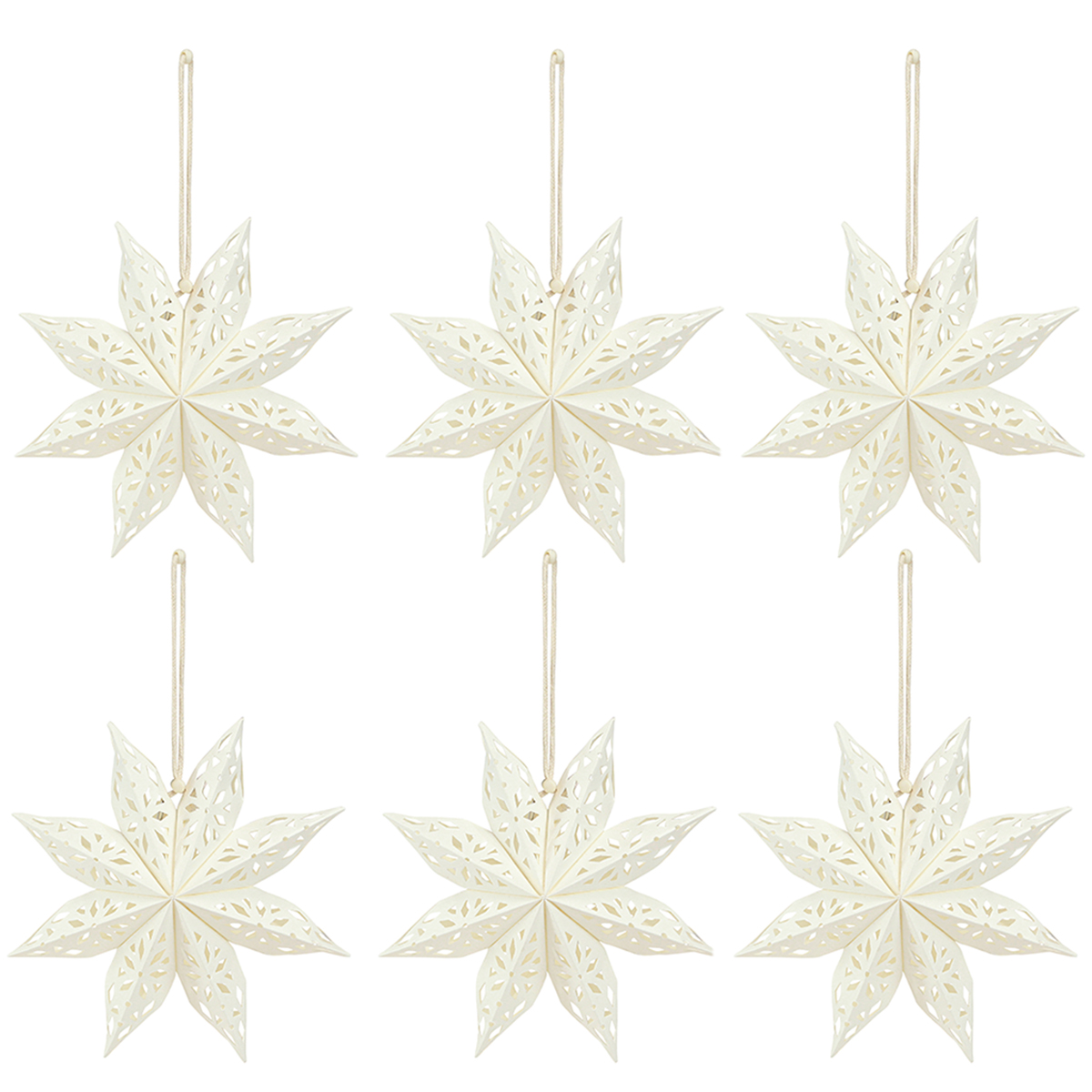 Ganci decorativi a forma di fiocco di neve a forma di stella, in carta bianca, Ø20 cm, set da 6