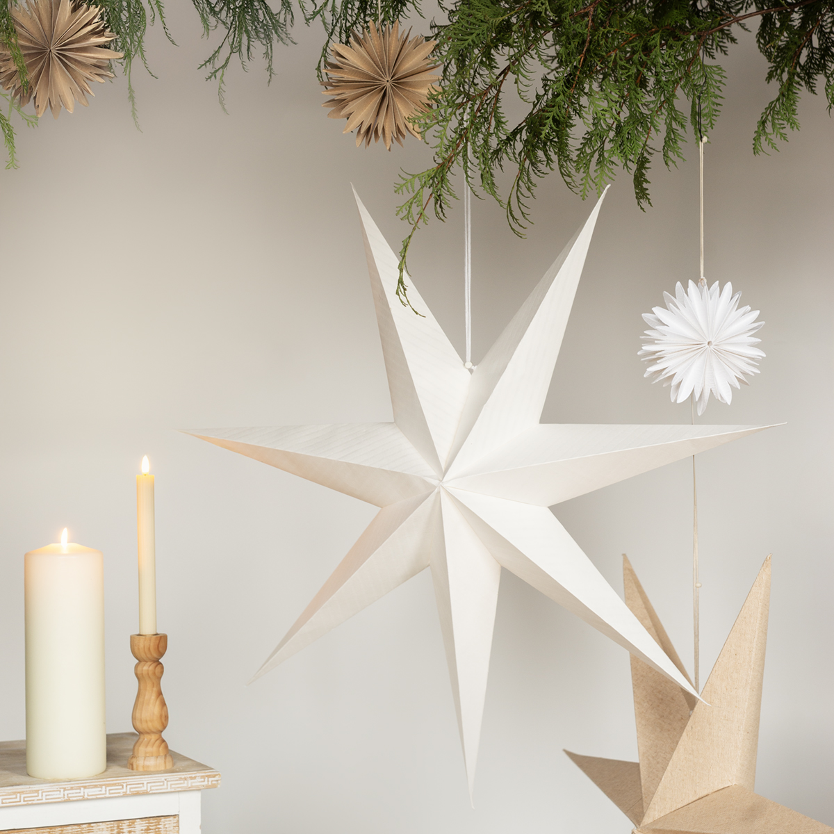 Décoration étoile en papier et jute pour des accents de Noël en blanc