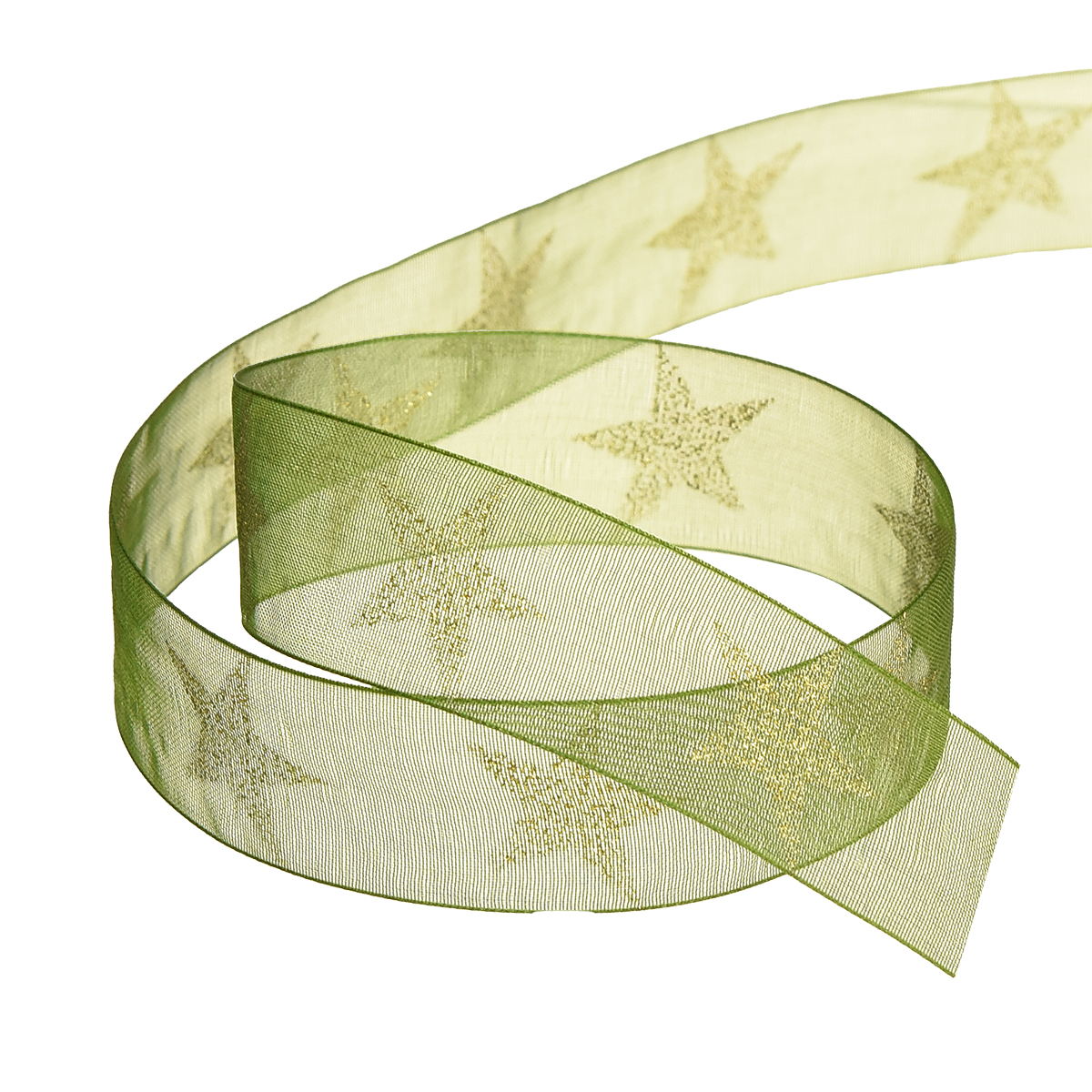 Ruban étoile ruban organza vert or Noël L25mm L18m