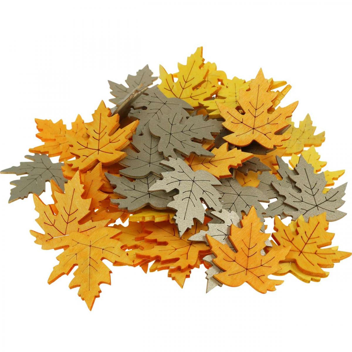 Décoration à disperser automne, feuilles d'érable, feuilles d'automne dorées, orange, jaune 4cm 72 pcs