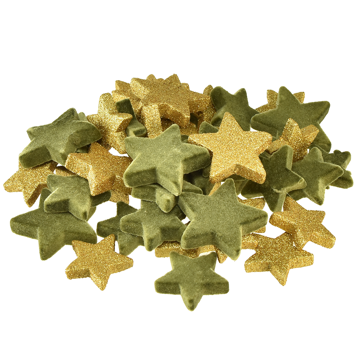 Produktname: Streudeko Sterne Grün und Gold mit Glitter Tischdeko Weihnachten 4/5cm 40 St