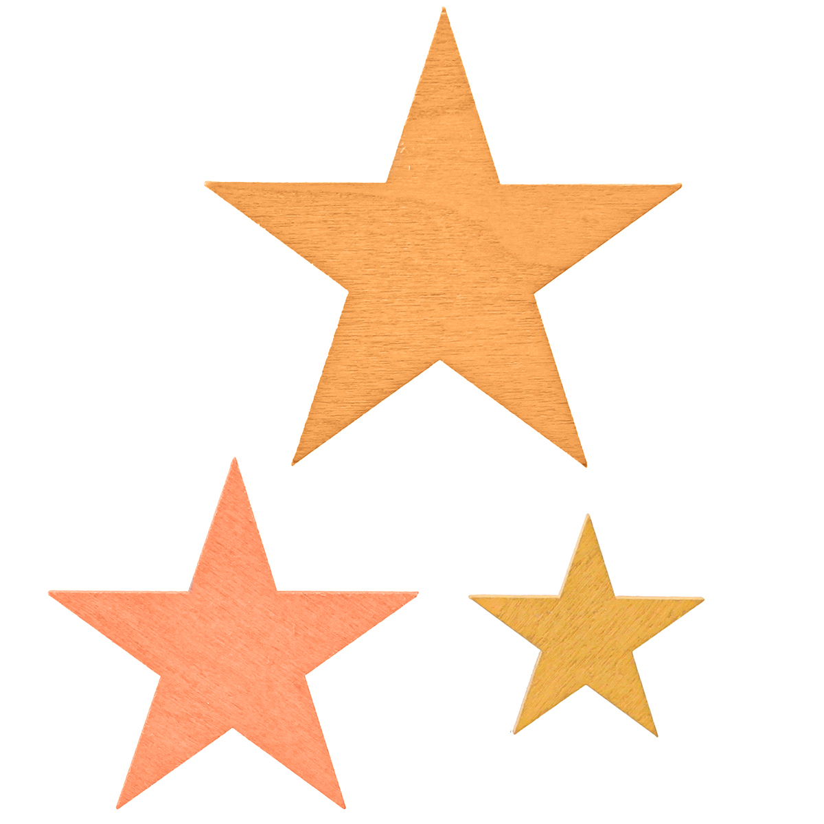 Streudeko Sterne Holz Orange 3 Farben Ø3,5/5,5/7cm 48 St