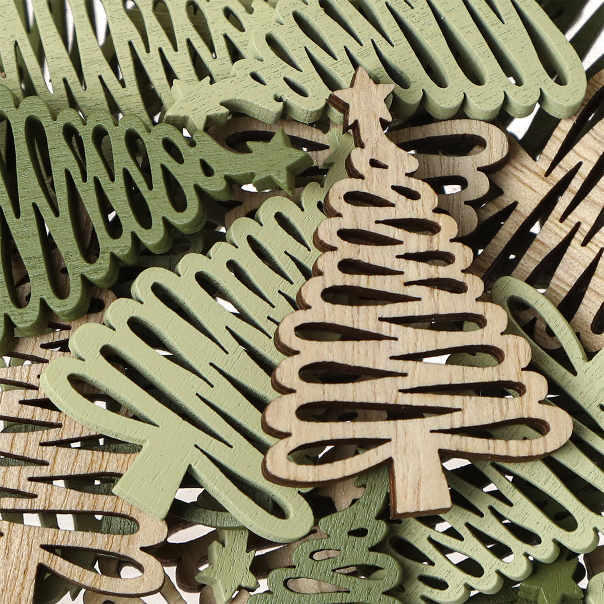 Étoiles en bois Motif sapin de Noël Marron Vert 3×4,5cm 72pcs