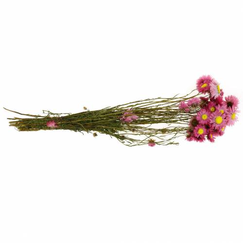 Sie erhalten die tiefrosa Strohblumen als Trockenblumen in einer Blumentüte. Die Länge der Stängel variiert zwischen 25 und 45 Zentimetern und die Blüte kann einen Durchmesser zwischen 3 und 4,5 Zentimetern aufweisen. Aufgrund der Austrocknung kann auch das Nettogewicht von ungefähr 25 Gramm etwas höher oder etwas geringer sein.