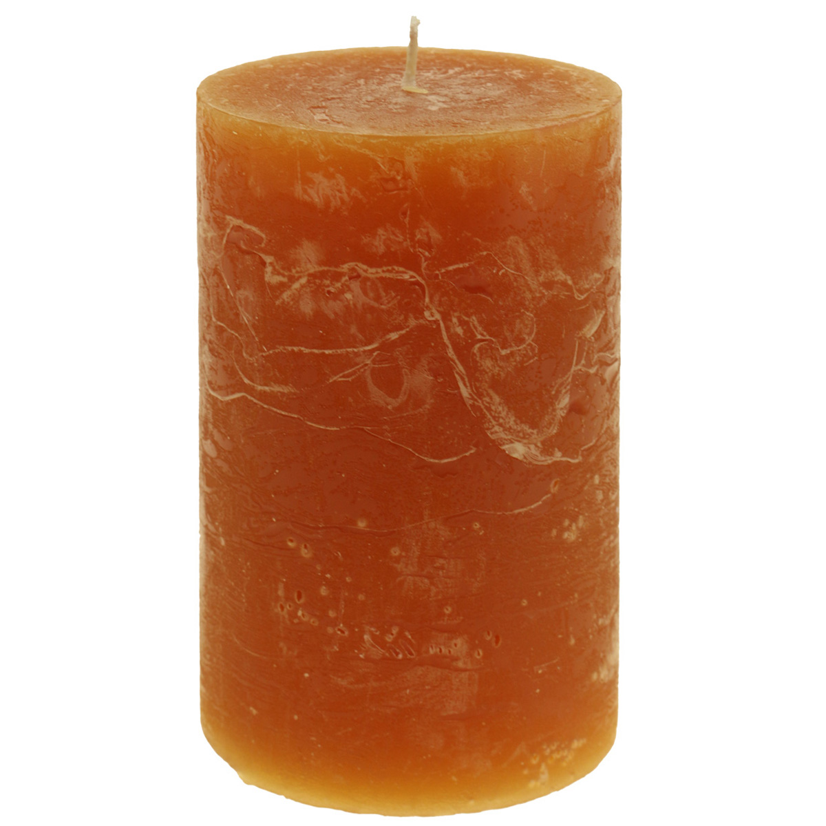 Candele a colonna, arancione scuro, tinta unita, design Tramonto, 60x100mm, 4 pezzi, rustico, estate, autunno, Avvento