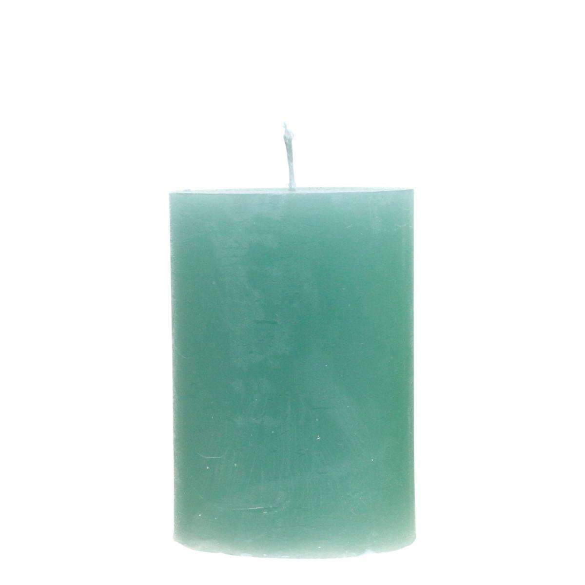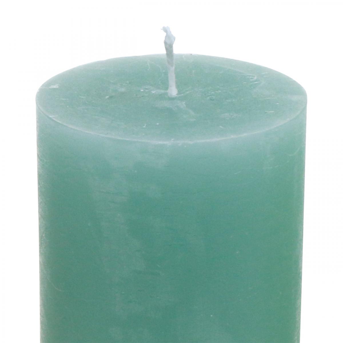 Candele a colonna, tinta unita verde giada chiaro, 70×100 mm, 4 pezzi - Candele decorative di alta qualità per decorazioni da tavola, Pasqua, matrimoni