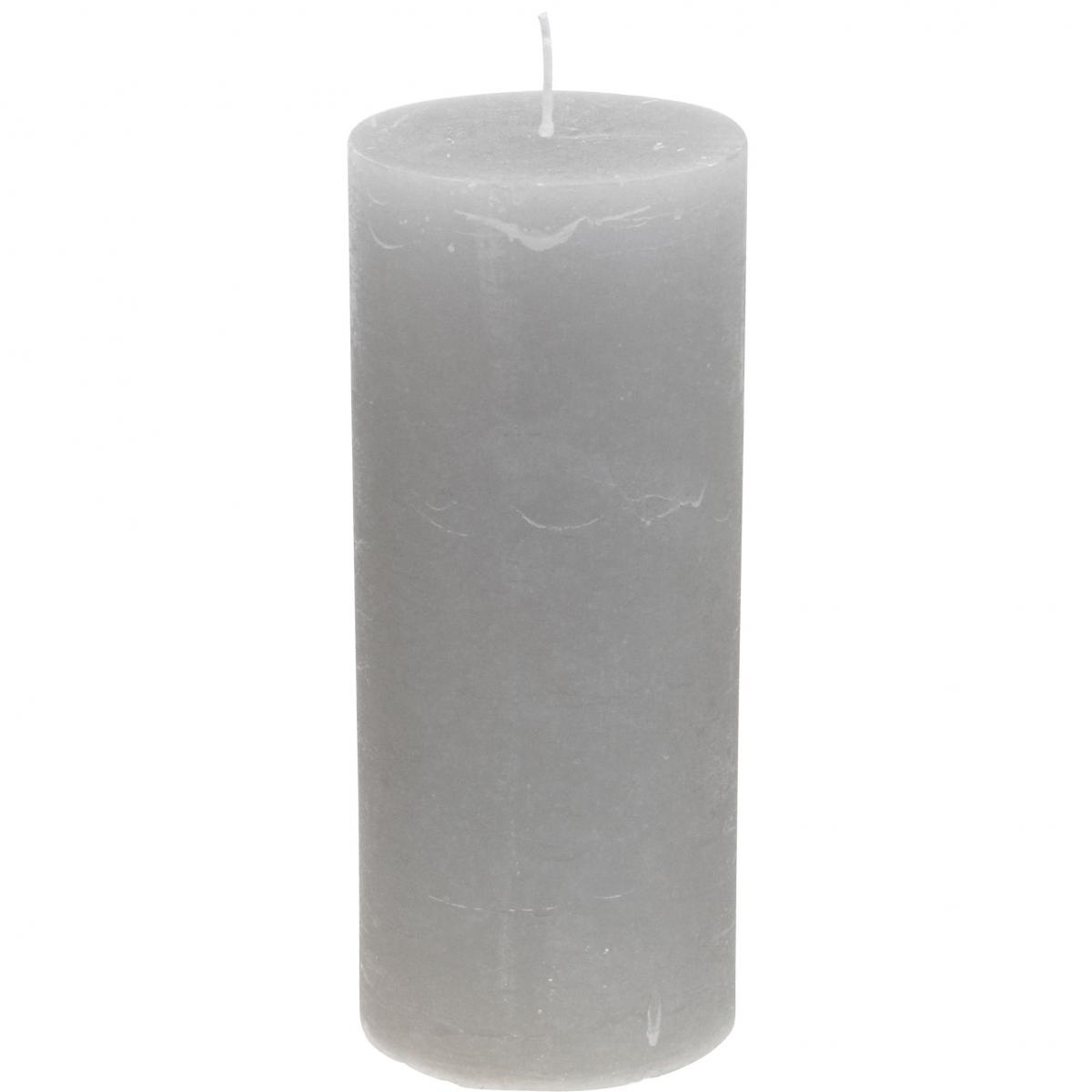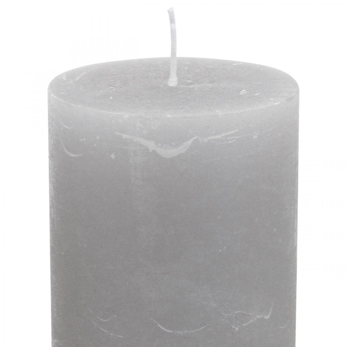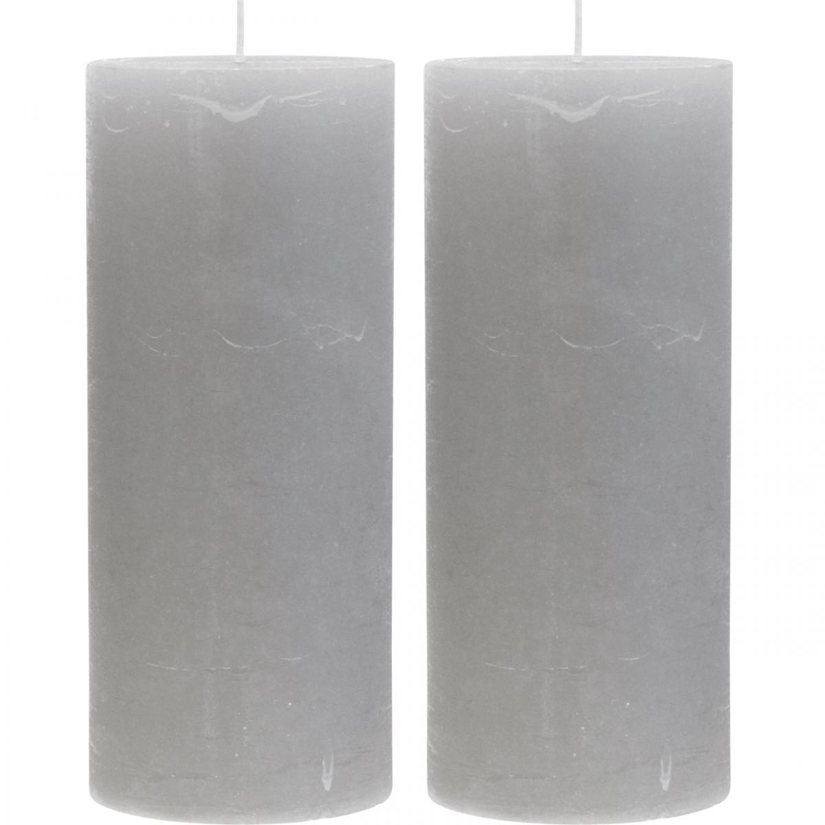 Eleganti candele a colonna, grigio chiaro, tinta unita, 85×200 mm, lunga durata di combustione, set da 2